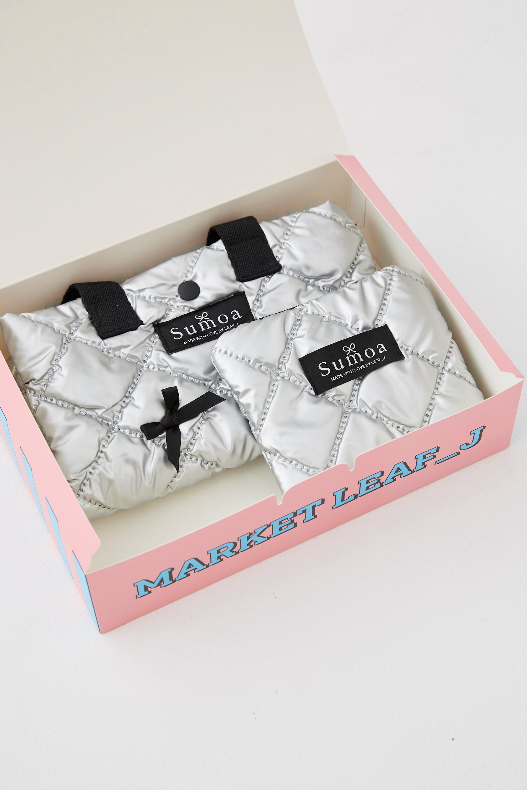 シルバーキルティングにブラックリボン。